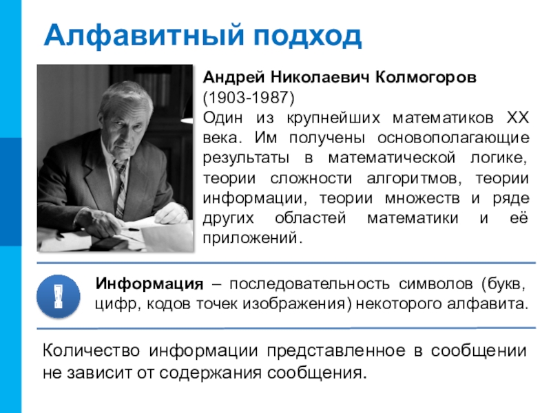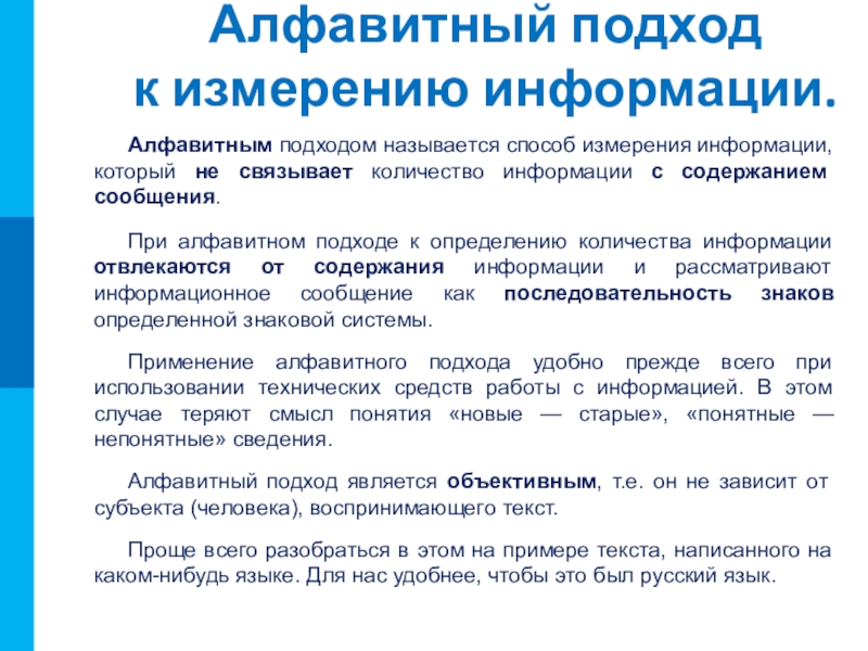 Количество информации представленное в сообщении не зависит от содержания сообщения.