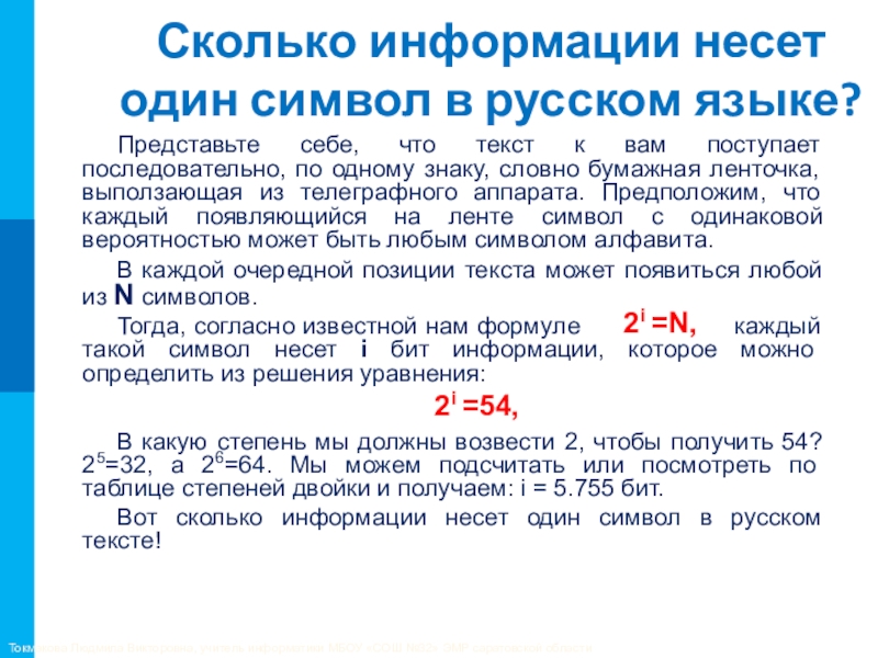 Токмакова Людмила Викторовна, учитель информатики МБОУ «СОШ №32» ЭМР саратовской области
