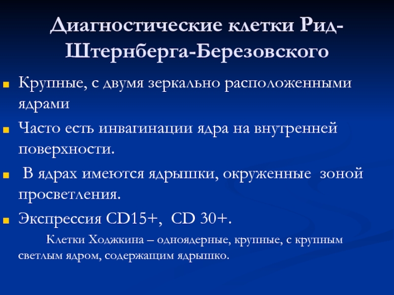 Слайд 76Диагностические клетки Рид-Штернберга-Березовского