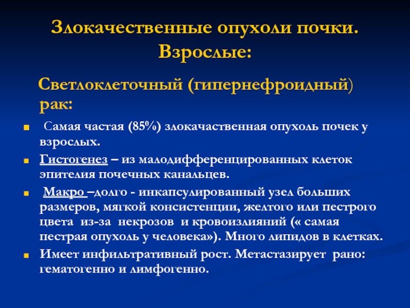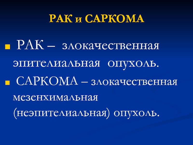 злокачественная мезенхимальная (неэпителиальная) опухоль.