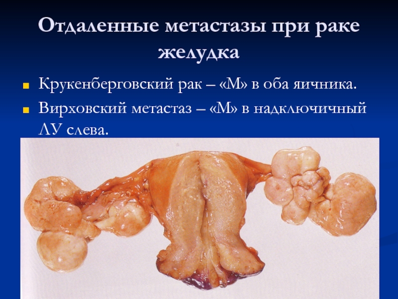 Вирховский метастаз – «М» в надключичный ЛУ слева.