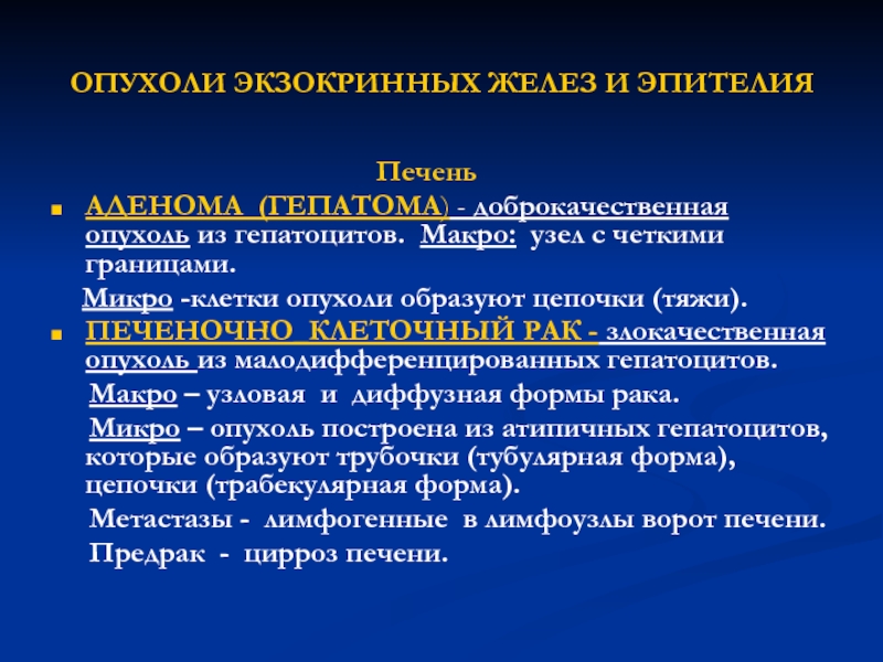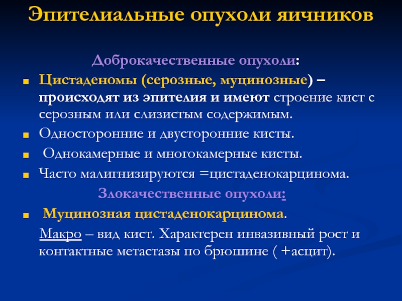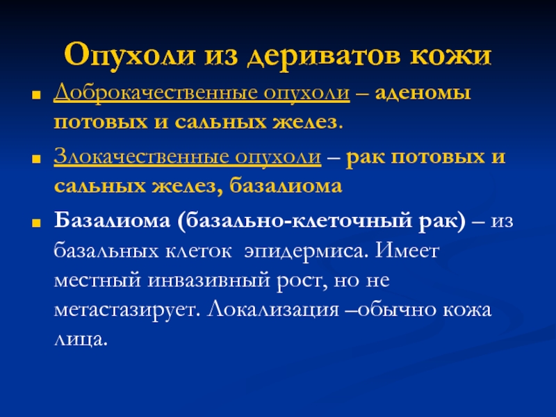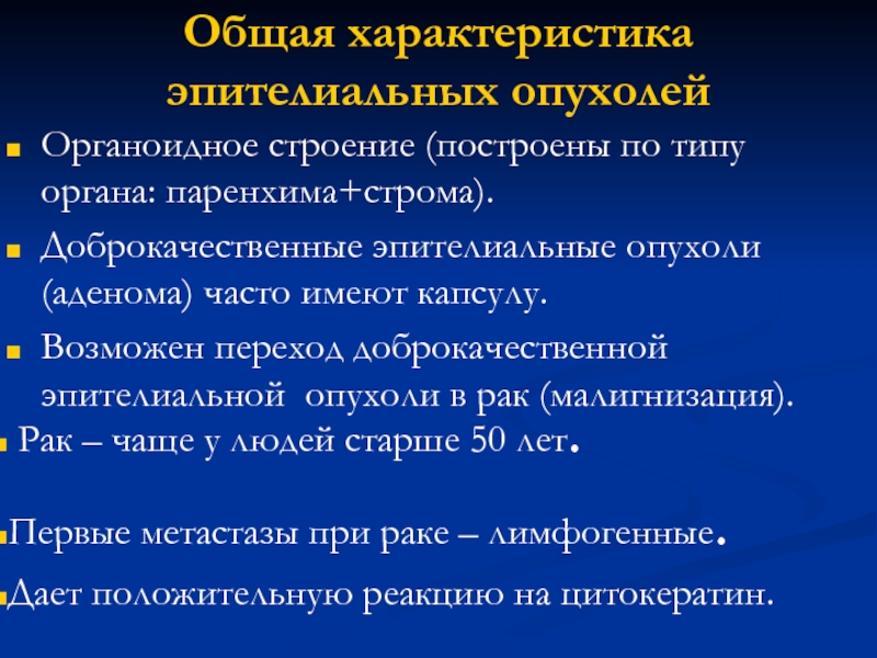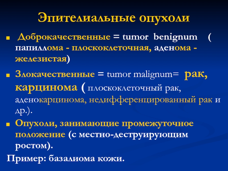 Эпителиальные опухоли – это опухоли из производных эктодермы (покровный