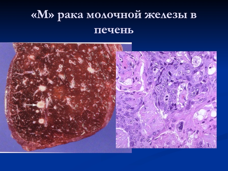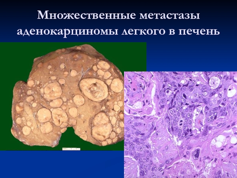 Слайд 14Множественные метастазы аденокарциномы легкого в печень