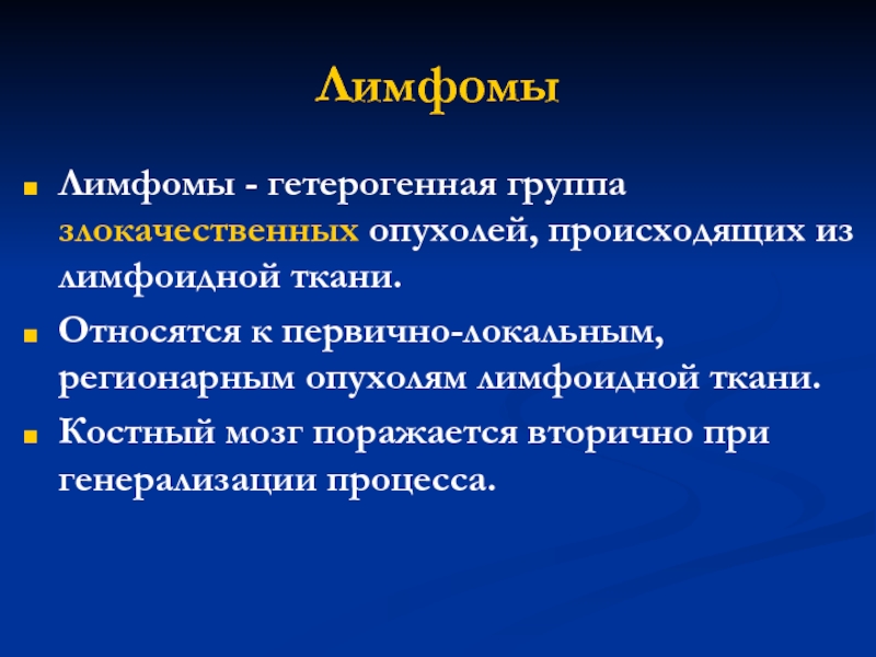 Лимфомы - гетерогенная группа злокачественных опухолей, происходящих из лимфоидной ткани.