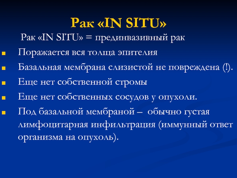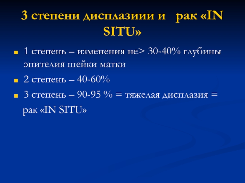 Слайд 73 степени дисплазиии и рак «IN SITU»