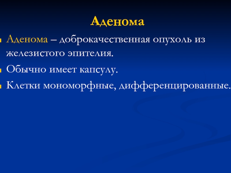 Доброкачественные эпителиальные опухоли (аденома) часто имеют капсулу.