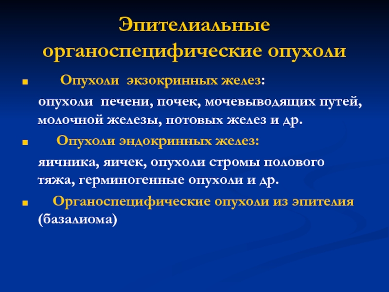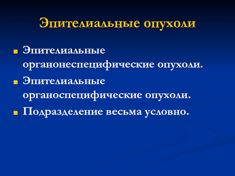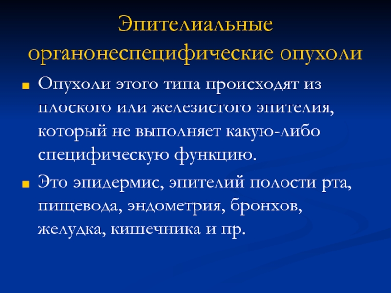 Слайд 17Эпителиальные органонеспецифические опухоли