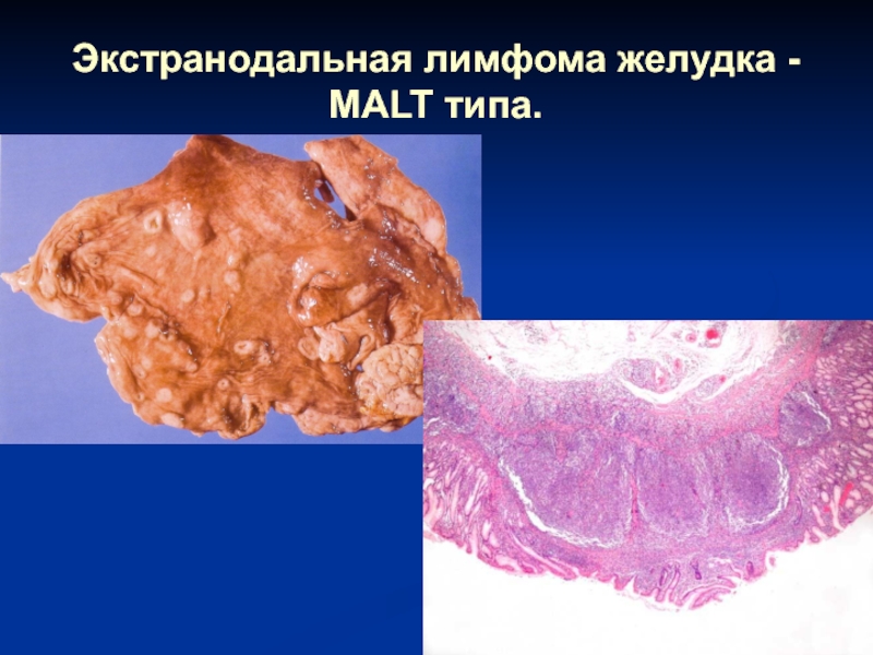 Слайд 83Экстранодальная лимфома желудка - MALT типа.