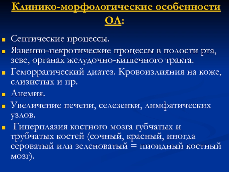 Слайд 66 Клинико-морфологические особенности ОЛ: