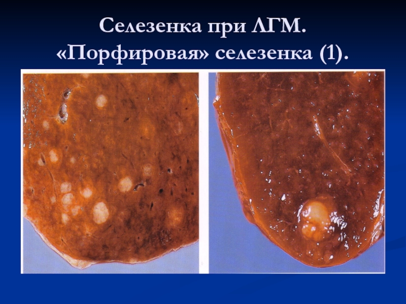 Слайд 75Селезенка при ЛГМ. «Порфировая» селезенка (1).
