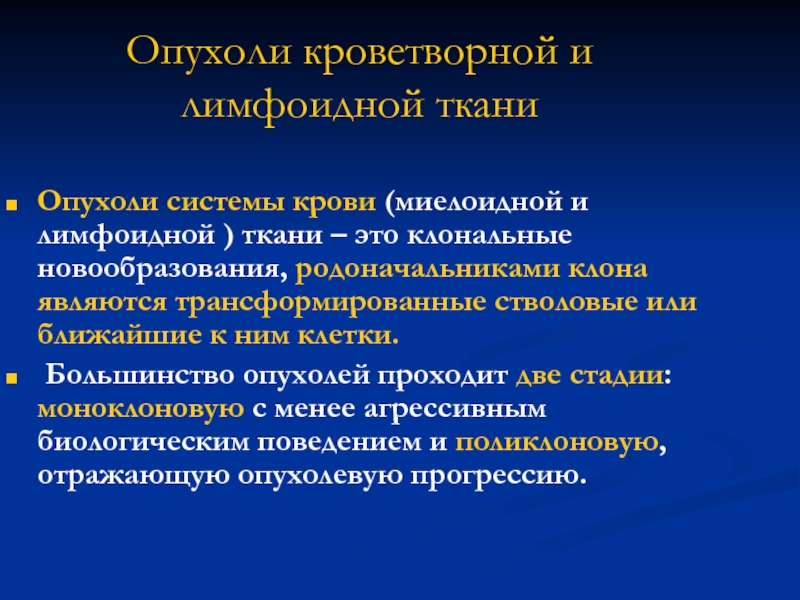 Опухоли кроветворной и лимфоидной ткани. Общие