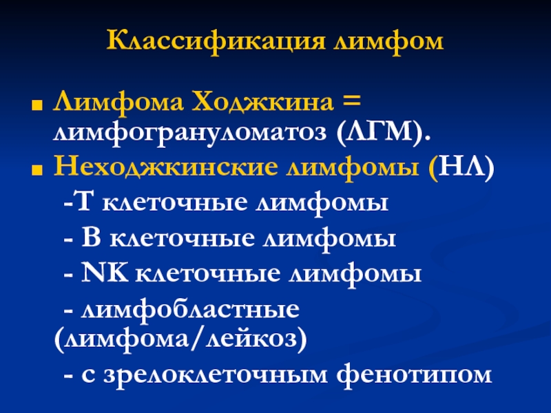 Лимфома Ходжкина = лимфогрануломатоз (ЛГМ).