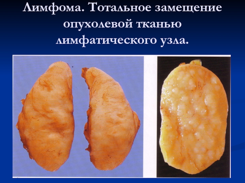 Слайд 74Лимфома. Тотальное замещение опухолевой тканью лимфатического узла.