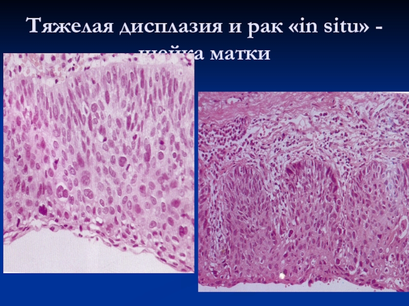 Слайд 9Тяжелая дисплазия и рак «in situ» - шейка матки