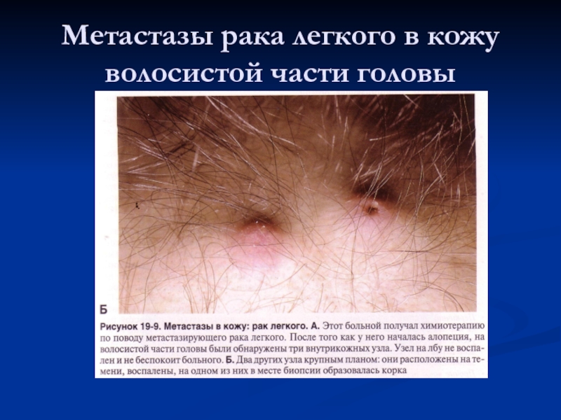 Слайд 13Метастазы рака легкого в кожу волосистой части головы