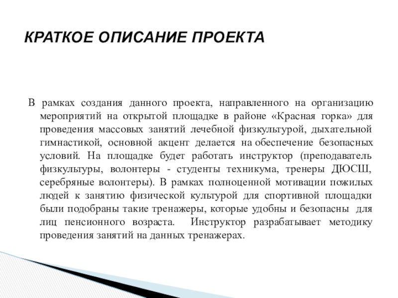 КРАТКОЕ ОПИСАНИЕ ПРОЕКТА