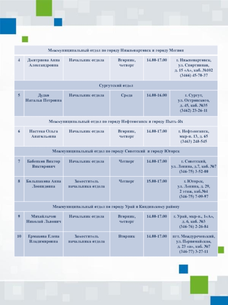 заместителями, начальниками структурных подразделений аппарата Управления Федеральной службы государственнойрегистрации, кадастра и картографии по Ханты-Мансийскому