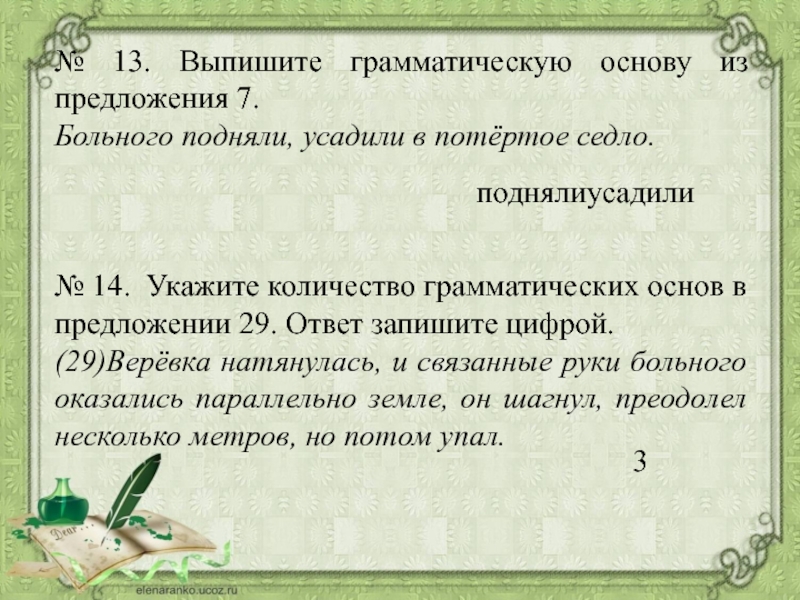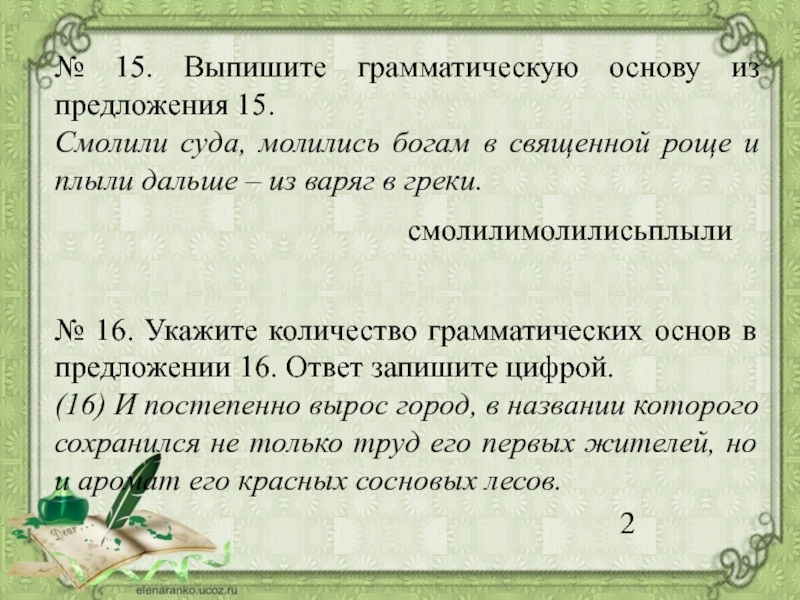 Слайд 23№ 15. Выпишите грамматическую основу из предложения 15.