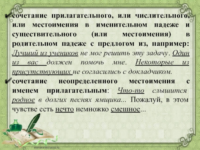 Слайд 8сочетание прилагательного, или числительного, или местоимения в именительном падеже и