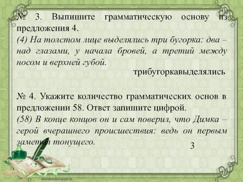 Слайд 17№ 3. Выпишите грамматическую основу из предложения 4.