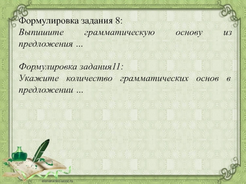Слайд 16№ 1. Выпишите грамматическую основу из предложения 9.