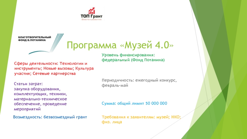 Требования к заявителям: музей; НКО; физ. лица