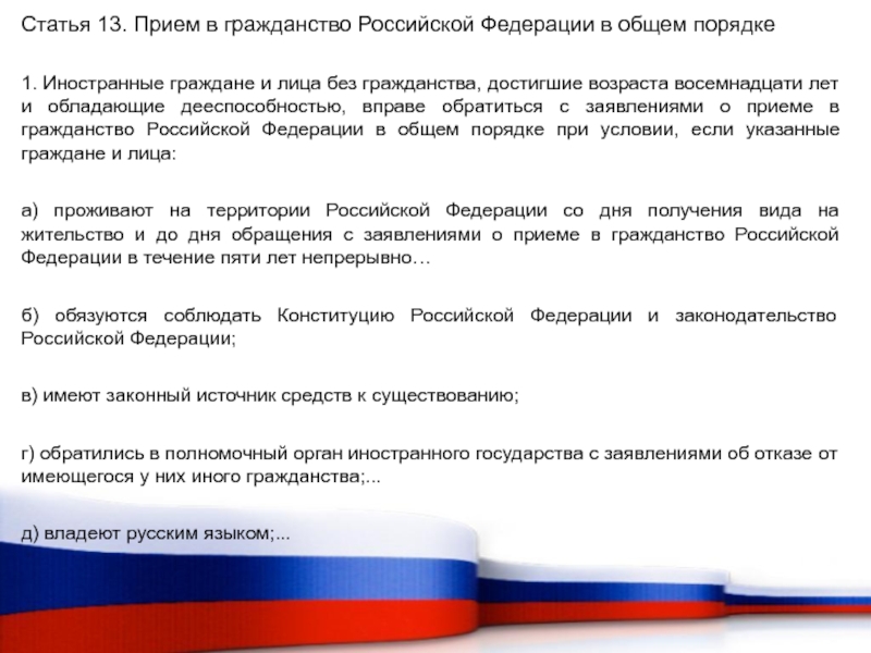 г) оба его родителя или единственный его родитель, проживающие на территории Российской Федерации, являются иностранными гражданами или лицами без гражданства, при условии, что ребенок родился на территории Российской Федерации, а государство, гражданами которого являются его родители или единственный его родитель, не предоставляет ребенку свое гражданство.