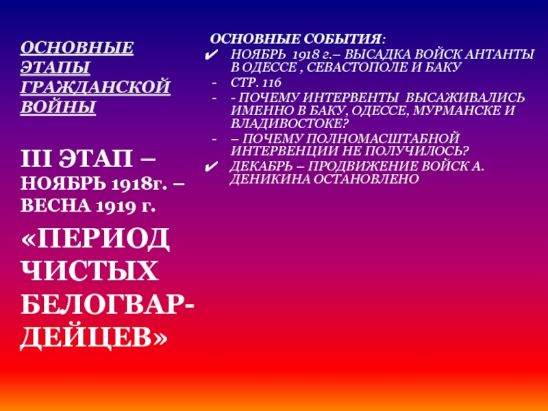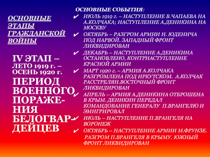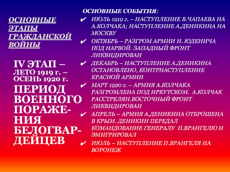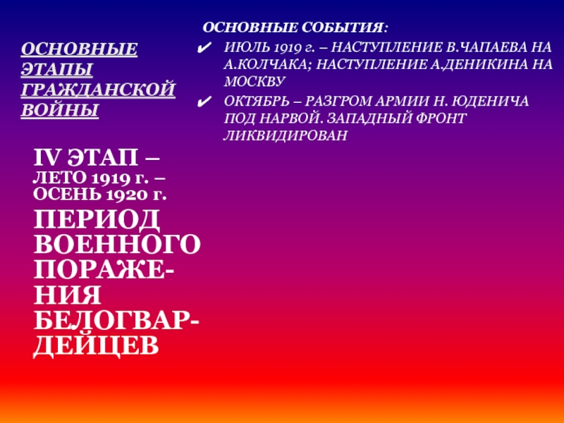 ПЕРИОД ВОЕННОГО ПОРАЖЕ-НИЯ БЕЛОГВАР-ДЕЙЦЕВ