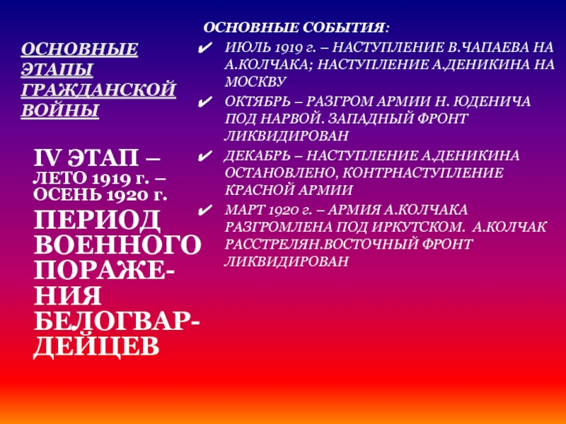IV ЭТАП – ЛЕТО 1919 г. – ОСЕНЬ 1920 г.