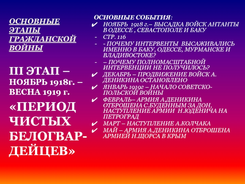 III ЭТАП – НОЯБРЬ 1918г. – ВЕСНА 1919 г.