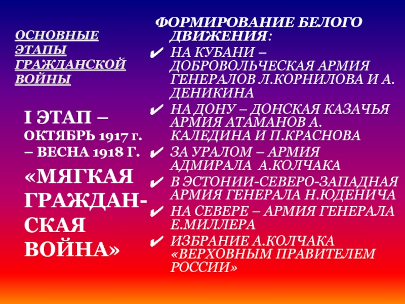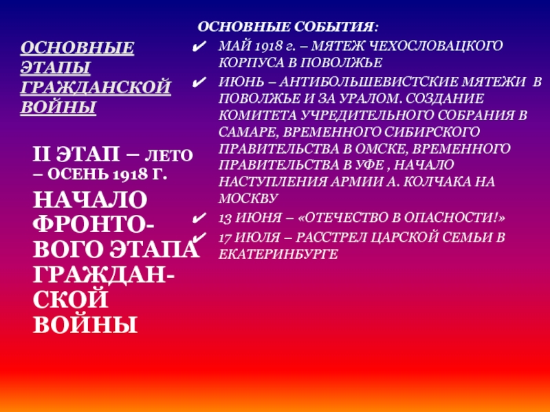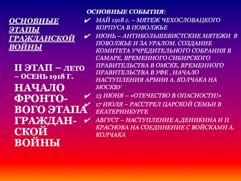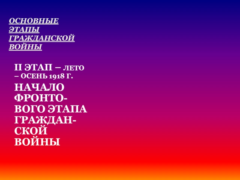 II ЭТАП – ЛЕТО – ОСЕНЬ 1918 Г.
