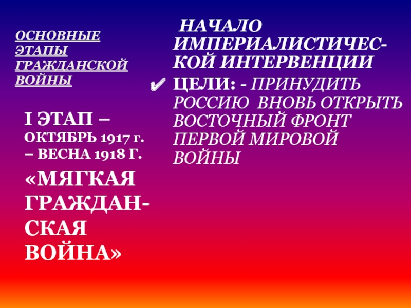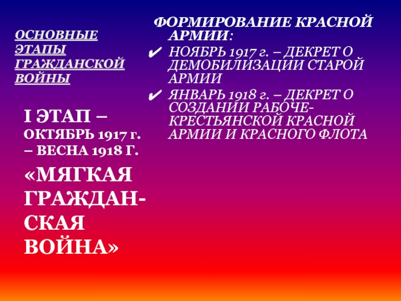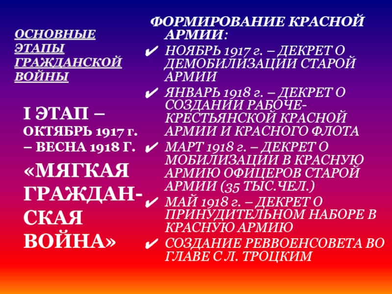 I ЭТАП – ОКТЯБРЬ 1917 г. – ВЕСНА 1918 Г.