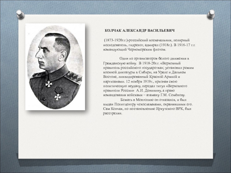 Слайд 11 КОЛЧАК АЛЕКСАНДР ВАСИЛЬЕВИЧ