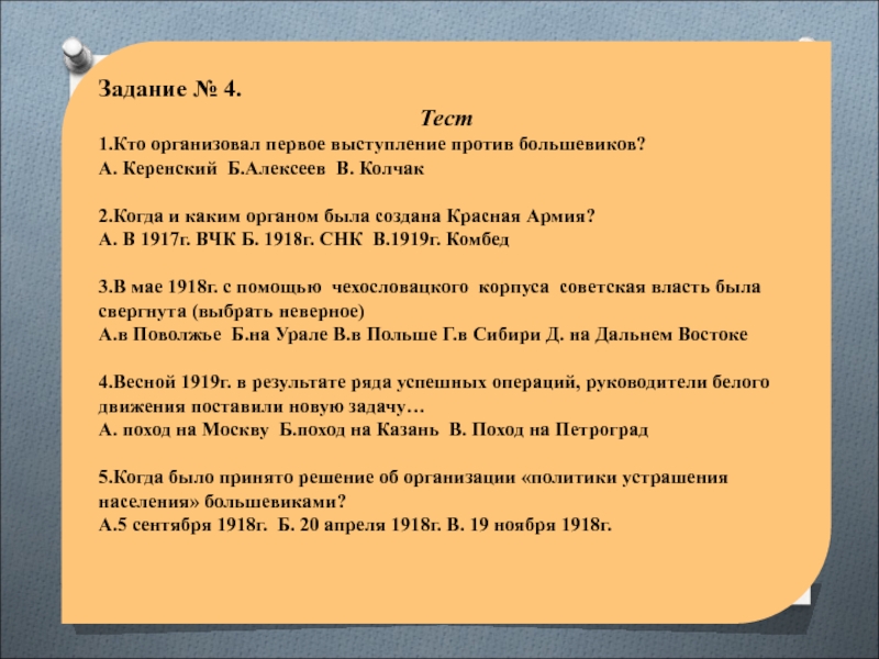 3.В мае 1918г. с помощью чехословацкого корпуса советская власть была свергнута (выбрать неверное)