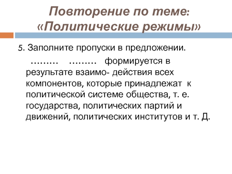 всех компонентов, которые принадлежат к политической системе общества, т. е. государства, политических партий и движений, политических институтов и т. Д.