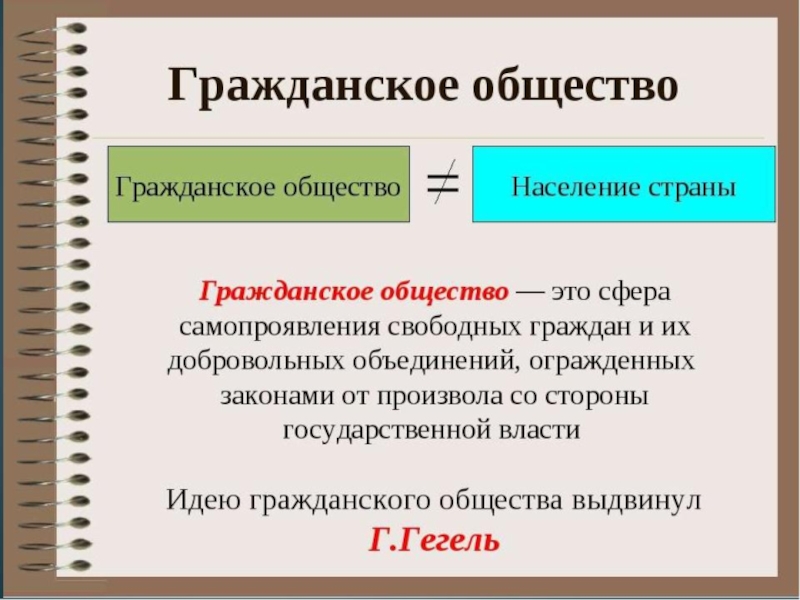 Б) Гражданское общество- совокупность отношений и объединений в сфере экономики, культуры и пр., развивающихся в рамках демократического общества независимо от государства.