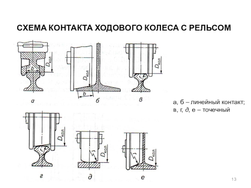 Слайд 13СХЕМА КОНТАКТА ХОДОВОГО КОЛЕСА С РЕЛЬСОМ