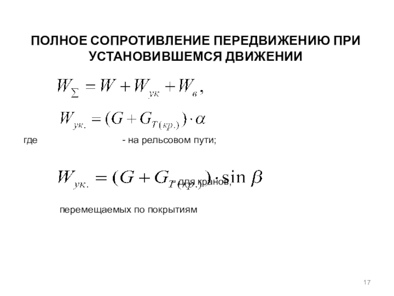 Слайд 17ПОЛНОЕ СОПРОТИВЛЕНИЕ ПЕРЕДВИЖЕНИЮ ПРИ УСТАНОВИВШЕМСЯ ДВИЖЕНИИ