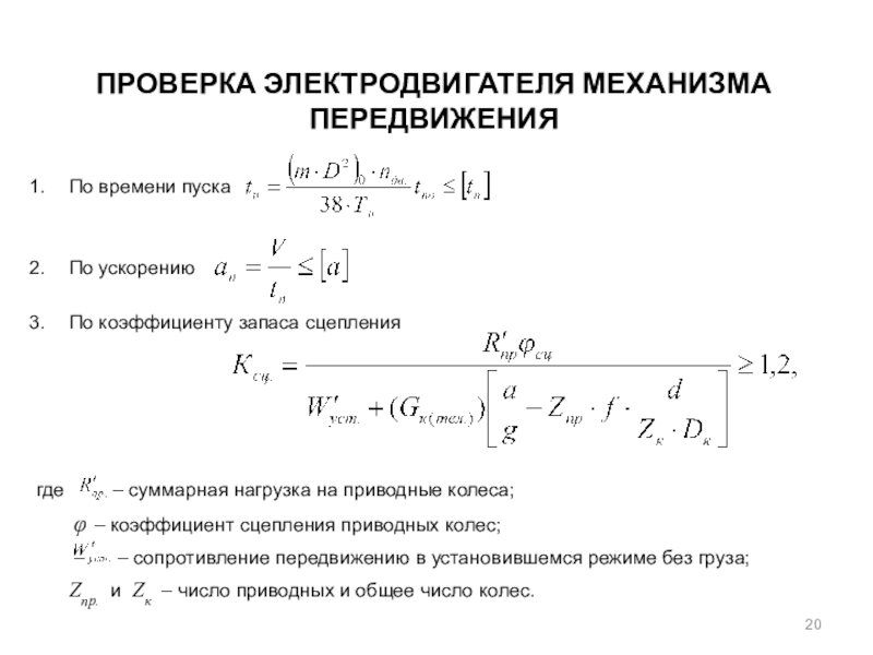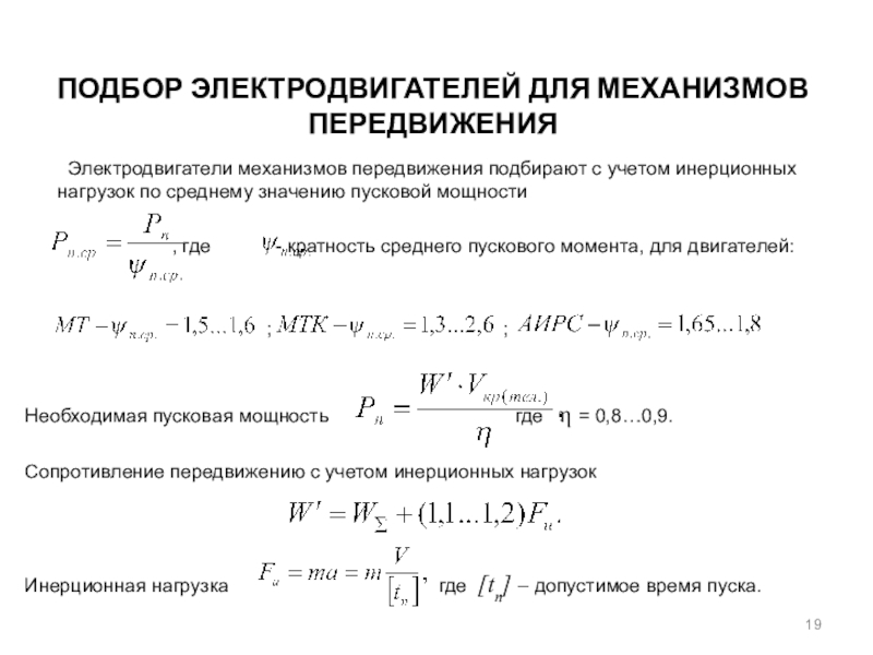 Слайд 19ПОДБОР ЭЛЕКТРОДВИГАТЕЛЕЙ ДЛЯ МЕХАНИЗМОВ ПЕРЕДВИЖЕНИЯ