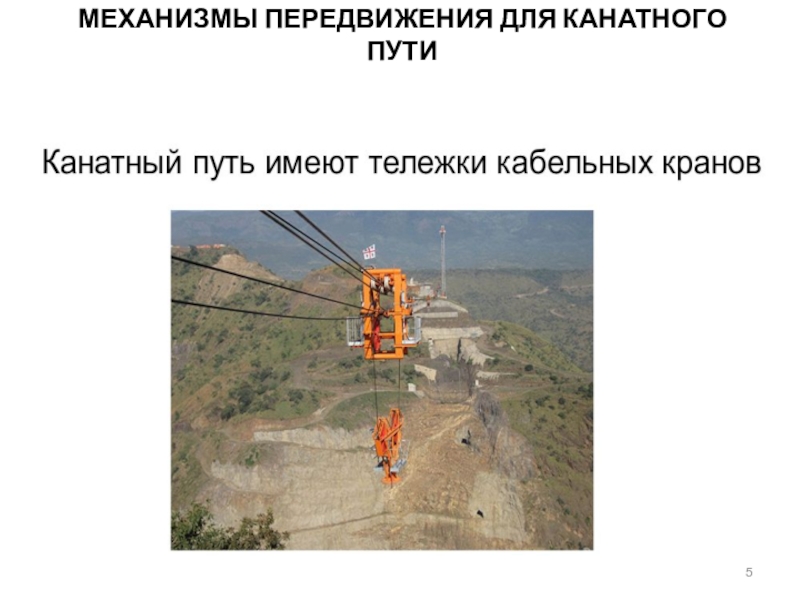 Слайд 5МЕХАНИЗМЫ ПЕРЕДВИЖЕНИЯ ДЛЯ КАНАТНОГО ПУТИ