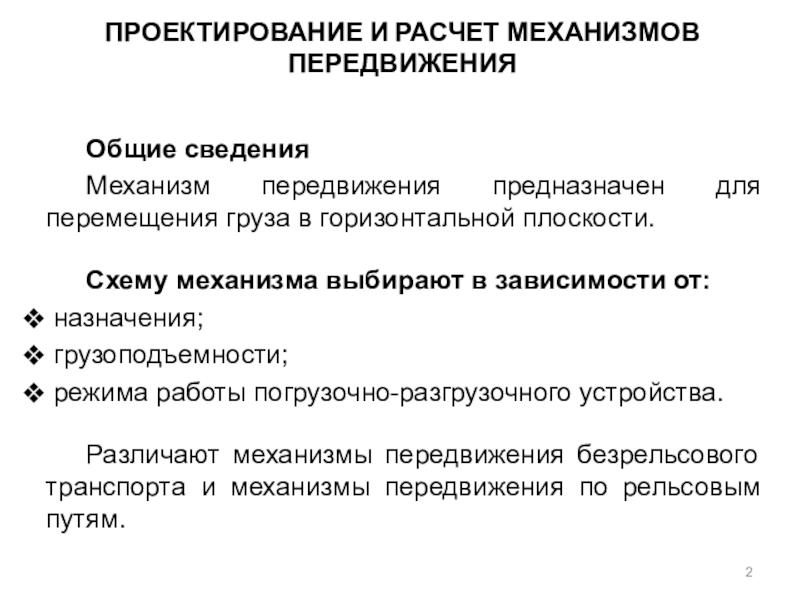 Слайд 2ПРОЕКТИРОВАНИЕ И РАСЧЕТ МЕХАНИЗМОВ ПЕРЕДВИЖЕНИЯ