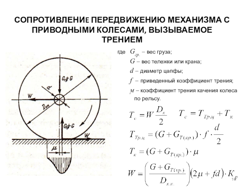 Слайд 16СОПРОТИВЛЕНИE ПЕРЕДВИЖЕНИЮ МЕХАНИЗМА С ПРИВОДНЫМИ КОЛЕСАМИ, ВЫЗЫВАЕМОЕ ТРЕНИЕМ