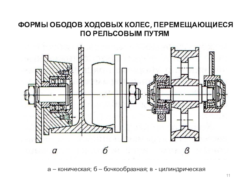 Слайд 11ФОРМЫ ОБОДОВ ХОДОВЫХ КОЛЕС, ПЕРЕМЕЩАЮЩИЕСЯ ПО РЕЛЬСОВЫМ ПУТЯМ