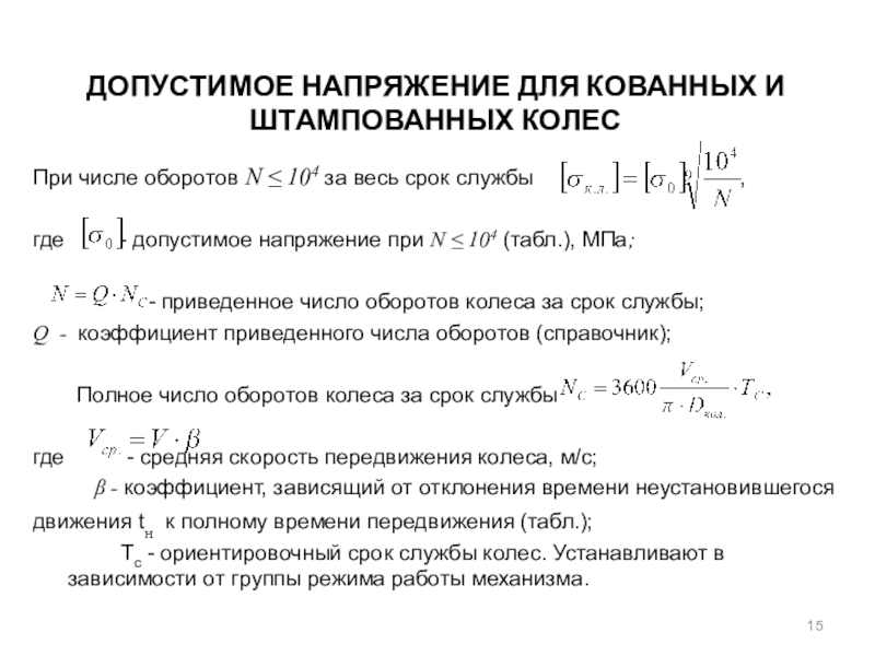 Слайд 15ДОПУСТИМОЕ НАПРЯЖЕНИЕ ДЛЯ КОВАННЫХ И ШТАМПОВАННЫХ КОЛЕС
