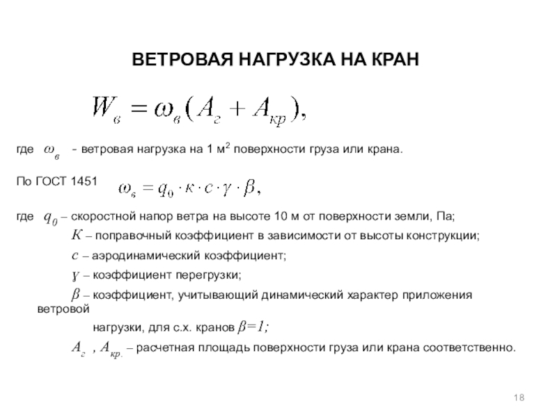 Слайд 18ВЕТРОВАЯ НАГРУЗКА НА КРАН