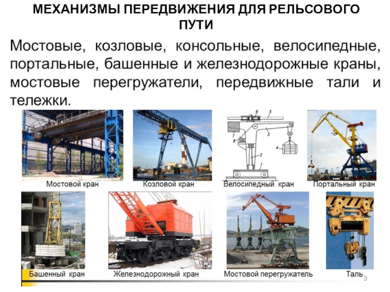 Слайд 3МЕХАНИЗМЫ ПЕРЕДВИЖЕНИЯ ДЛЯ РЕЛЬСОВОГО ПУТИ