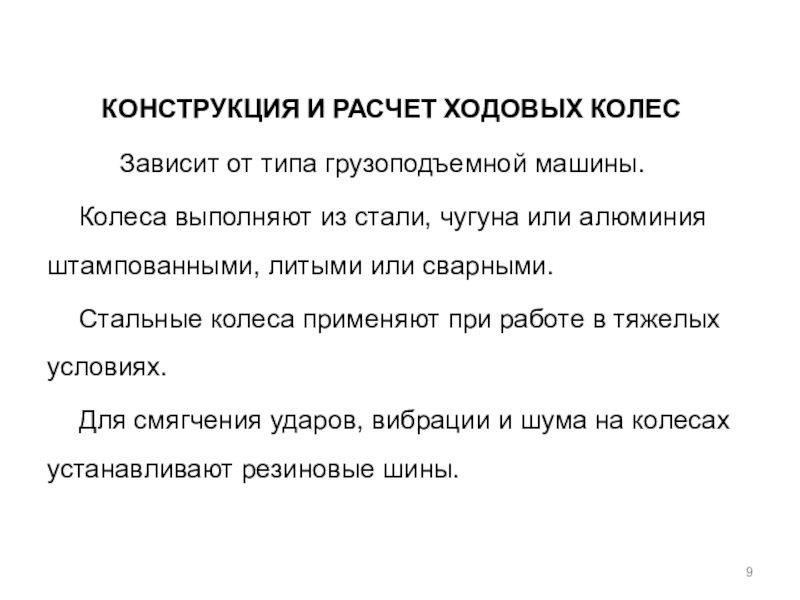 Слайд 9КОНСТРУКЦИЯ И РАСЧЕТ ХОДОВЫХ КОЛЕС