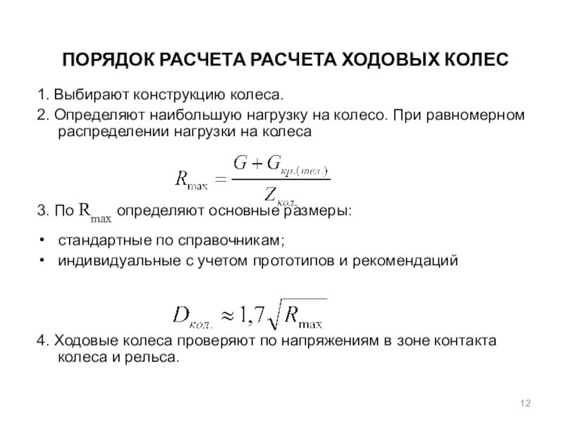Слайд 12ПОРЯДОК РАСЧЕТА РАСЧЕТА ХОДОВЫХ КОЛЕС