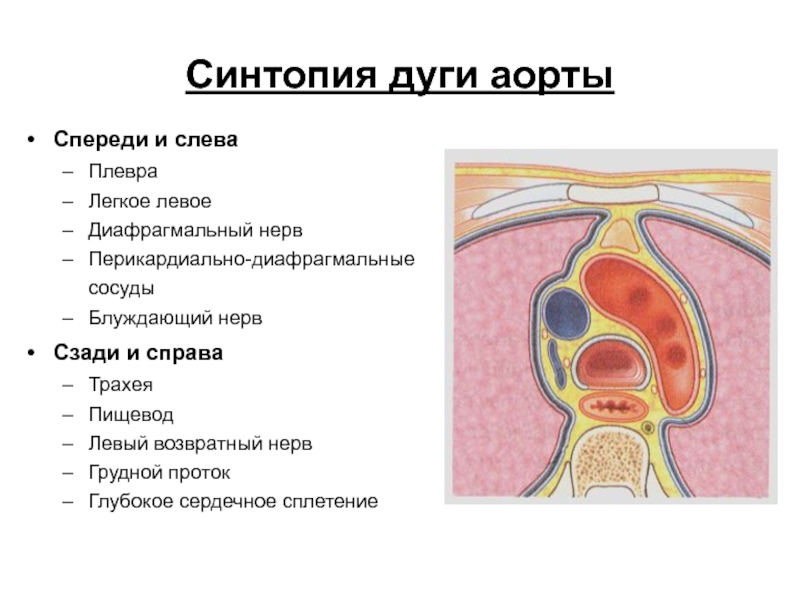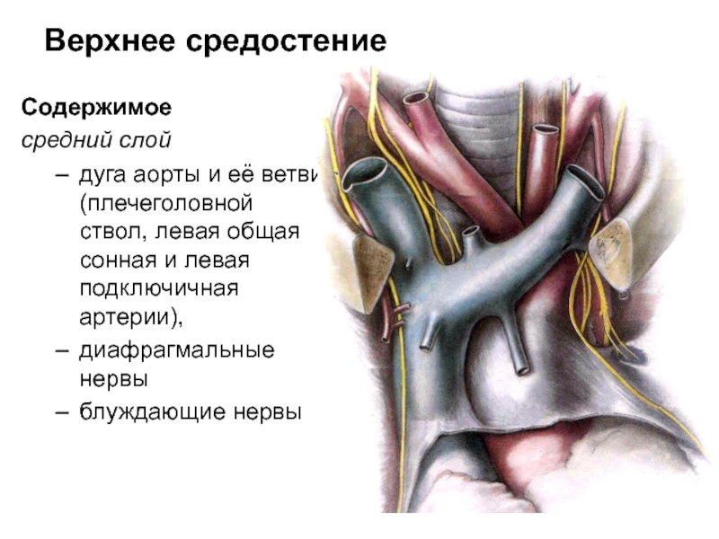дуга аорты и её ветви (плечеголовной ствол, левая