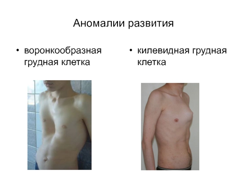 Слайд 7Формы грудной клетки в зависимости от телосложения. Аномалии развития